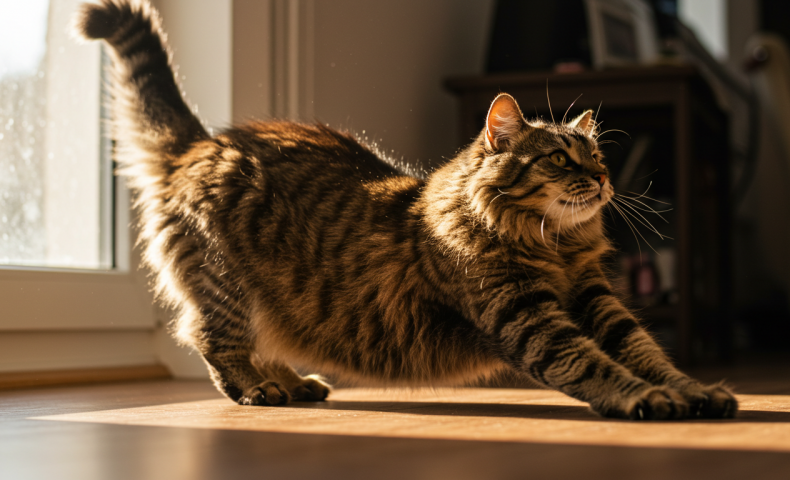 (5) Not long after the cat woke up, it stretched.