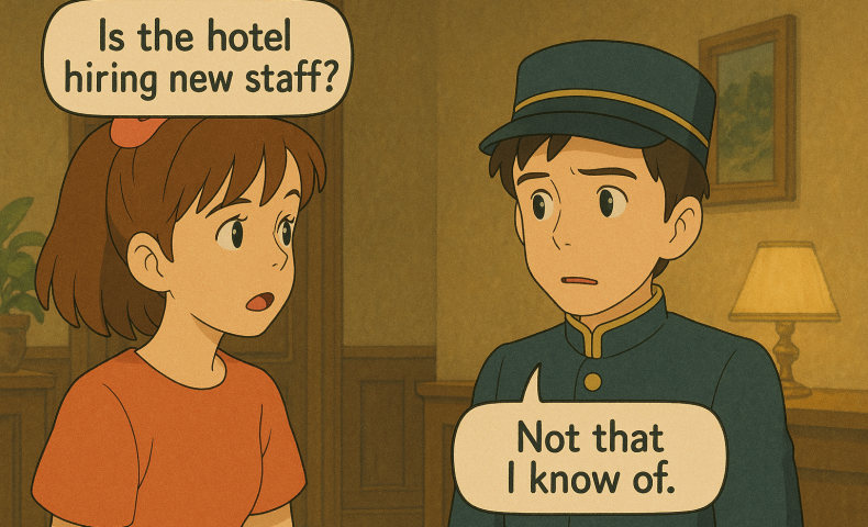(4) Is the hotel hiring new staff? — Not that I know of.