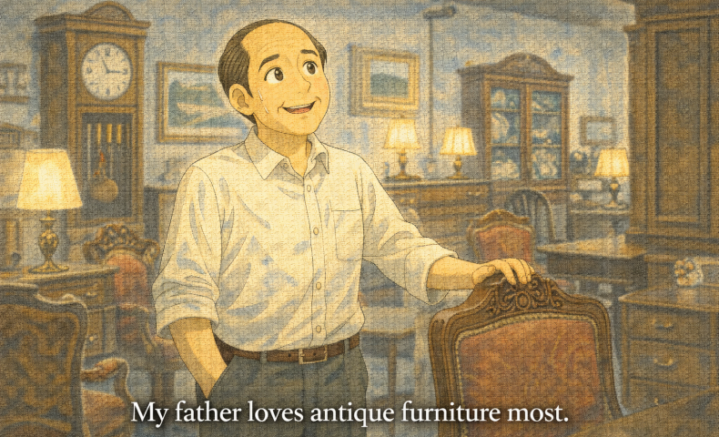 (4) 私の父はアンティーク家具が一番大好きです。