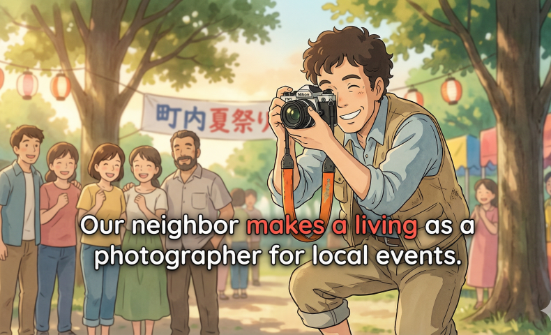 (6) 私たちの隣人は地元のイベントの写真家として生計を立てている。