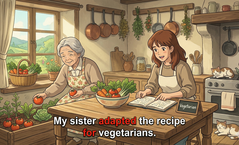 (5) My sister adapted the recipe for vegetarians.
