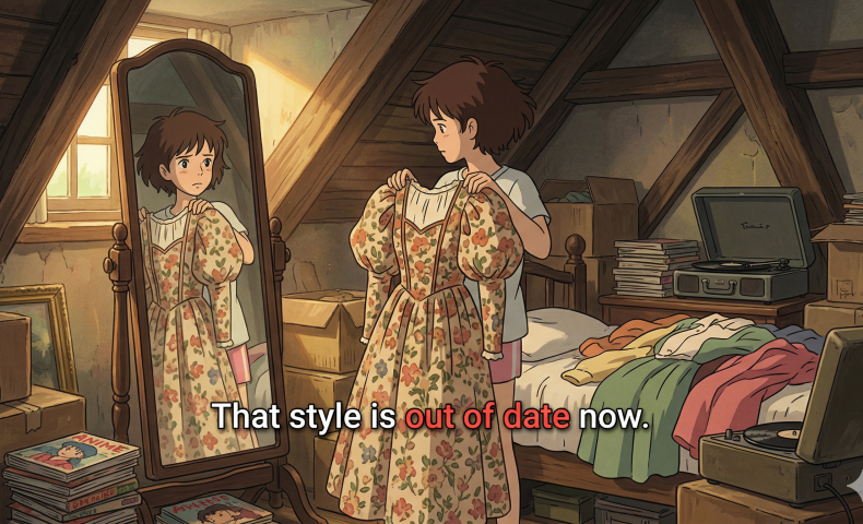 ・技術・スタイルには「時代遅れ」、パスポート・情報には「期限切れ・古い」というニュアンスになる
