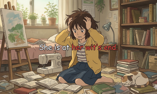 意味:途方に暮れて、どうすればいいかわからなくて形式:be at one's wit's end(one's は my / his / her など)ポイン…