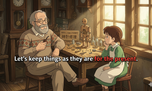 意味:今のところ、さしあたり、当面は形式:文末: ~ for the present / 文頭: For the present, ~ポイント:・「今…