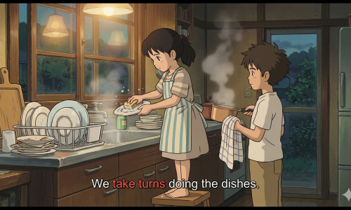 意味:交代でする、順番にする形式:take turns + 動名詞 / take turns at + 名詞ポイント:・「複数の人が順番に〜する」という意…