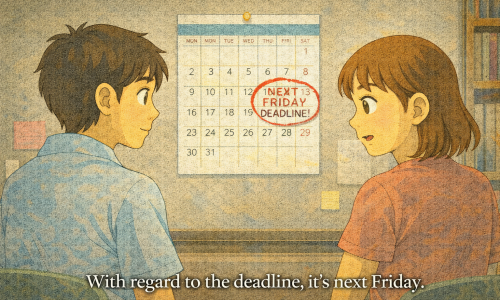 意味:〜に関して、〜の点については形式:with regard to + 名詞ポイント:「with regard to」はフォーマルな「〜について」の表現。…